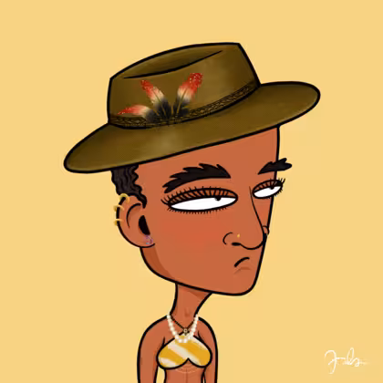 Collection Depressed Citizens Artist Juls Description ART. No team, no project, no future. Depressed Citizens is an urban & existential Art expression on Ordinals. In a parallel universe, "THEI" control us. DC unites against toxic society, encouraging critical thinking. 100% hand made collection that took Juls more than 6 months of daily work. Name Citizen#2567 Origin Asian & Pacific islander Gender Woman Necklace Pearl necklace Hat Fedora hat Mustache Beard No beard Glasses No Glasses Earrings Helix ring trio Hair Style Short curly with gel Clothes Destiny's child crop top Tattoo No Tattoo Star Background Without stars