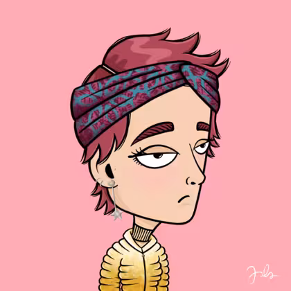 Collection Depressed Citizens Artist Juls Description ART. No team, no project, no future. Depressed Citizens is an urban & existential Art expression on Ordinals. In a parallel universe, "THEI" control us. DC unites against toxic society, encouraging critical thinking. 100% hand made collection that took Juls more than 6 months of daily work. Name Citizen#2840 Origin Caucasian non hispanic Gender Woman Necklace No Necklace Hat Printed headband Mustache Beard No beard Glasses No Glasses Earrings Upper lobe rings Hair Style Shaggy short Clothes Beige turtleneck sweater Tattoo No Tattoo Star Background Without stars