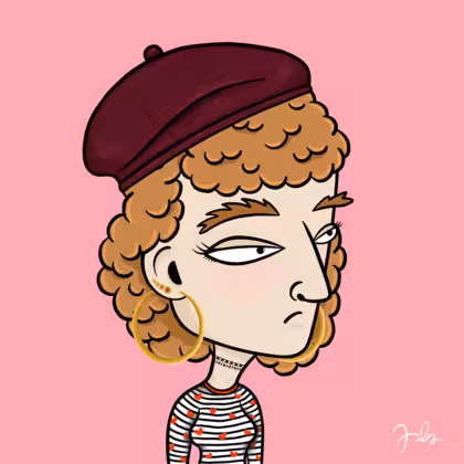 Collection Depressed Citizens Artist Juls Description ART. No team, no project, no future. Depressed Citizens is an urban & existential Art expression on Ordinals. In a parallel universe, "THEI" control us. DC unites against toxic society, encouraging critical thinking. 100% hand made collection that took Juls more than 6 months of daily work. Name Citizen#2873 Origin Caucasian non hispanic Gender Woman Necklace Choker Hat Burgundy beret Mustache Beard No beard Glasses No Glasses Earrings Upper lobe strass Hair Style Curly Clothes Marine heart long-sleeve shirt Tattoo No Tattoo Star Background Without stars