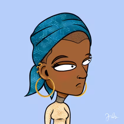 Collection Depressed Citizens Artist Juls Description ART. No team, no project, no future. Depressed Citizens is an urban & existential Art expression on Ordinals. In a parallel universe, "THEI" control us. DC unites against toxic society, encouraging critical thinking. 100% hand made collection that took Juls more than 6 months of daily work. Name Citizen#1746 Origin Hispanic Gender Woman Necklace No Necklace Hat Printed head scarf Mustache Beard No beard Glasses No Glasses Earrings Upper lobe strass Hair Style Shaved head Clothes Beige turtleneck sweater Tattoo No Tattoo Star Background Without stars