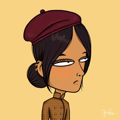 Collection Depressed Citizens Artist Juls Description ART. No team, no project, no future. Depressed Citizens is an urban & existential Art expression on Ordinals. In a parallel universe, "THEI" control us. DC unites against toxic society, encouraging critical thinking. 100% hand made collection that took Juls more than 6 months of daily work. Name Citizen#924 Origin Asian & Pacific islander Gender Woman Necklace No Necklace Hat Burgundy beret Mustache Beard No beard Glasses No Glasses Earrings Helix ring trio Hair Style Low bun Clothes Not visible T-shirt Tattoo No Tattoo Star Background Without stars