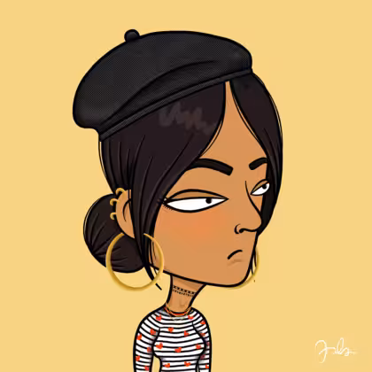 Collection Depressed Citizens Artist Juls Description ART. No team, no project, no future. Depressed Citizens is an urban & existential Art expression on Ordinals. In a parallel universe, "THEI" control us. DC unites against toxic society, encouraging critical thinking. 100% hand made collection that took Juls more than 6 months of daily work. Name Citizen#44 Origin Asian & Pacific islander Gender Woman Necklace Gold layered necklace Hat Black beret Mustache Beard No beard Glasses No Glasses Earrings Helix ring trio Hair Style Low bun Clothes Marine heart long-sleeve shirt Tattoo No Tattoo Star Background Without stars