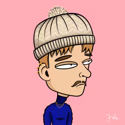 Collection Depressed Citizens Artist Juls Description ART. No team, no project, no future. Depressed Citizens is an urban & existential Art expression on Ordinals. In a parallel universe, "THEI" control us. DC unites against toxic society, encouraging critical thinking. 100% hand made collection that took Juls more than 6 months of daily work. Name Citizen#1098 Origin Caucasian non hispanic Gender Man Necklace Gold layered necklace Hat Bobble hat Mustache Beard Handlebar mustache Glasses No Glasses Earrings Helix ring trio Hair Style Short pixie Clothes Deep blue turtleneck sweater Tattoo No Tattoo Star Background Without stars