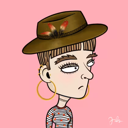 Collection Depressed Citizens Artist Juls Description ART. No team, no project, no future. Depressed Citizens is an urban & existential Art expression on Ordinals. In a parallel universe, "THEI" control us. DC unites against toxic society, encouraging critical thinking. 100% hand made collection that took Juls more than 6 months of daily work. Name Citizen#3073 Origin Caucasian non hispanic Gender Woman Necklace Choker Hat Fedora hat Mustache Beard No beard Glasses No Glasses Earrings Tragus star earring Hair Style Short pixie with bangs Clothes Marine heart long-sleeve shirt Tattoo No Tattoo Star Background Without stars