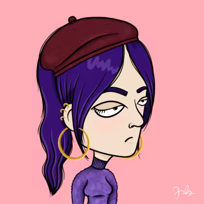 Collection Depressed Citizens Artist Juls Description ART. No team, no project, no future. Depressed Citizens is an urban & existential Art expression on Ordinals. In a parallel universe, "THEI" control us. DC unites against toxic society, encouraging critical thinking. 100% hand made collection that took Juls more than 6 months of daily work. Name Citizen#1870 Origin Caucasian non hispanic Gender Woman Necklace No Necklace Hat Burgundy beret Mustache Beard No beard Glasses No Glasses Earrings Helix ring trio Hair Style High ponytail Clothes Purple turtleneck sweater Tattoo No Tattoo Star Background Without stars
