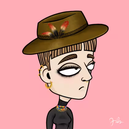 Collection Depressed Citizens Artist Juls Description ART. No team, no project, no future. Depressed Citizens is an urban & existential Art expression on Ordinals. In a parallel universe, "THEI" control us. DC unites against toxic society, encouraging critical thinking. 100% hand made collection that took Juls more than 6 months of daily work. Name Citizen#3055 Origin Caucasian non hispanic Gender Woman Necklace Colorful layered necklace Hat Fedora hat Mustache Beard No beard Glasses No Glasses Earrings Helix ring trio Hair Style Short pixie with bangs Clothes Black turtleneck women's sweater Tattoo No Tattoo Star Background Without stars