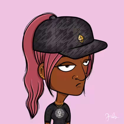 Collection Depressed Citizens Artist Juls Description ART. No team, no project, no future. Depressed Citizens is an urban & existential Art expression on Ordinals. In a parallel universe, "THEI" control us. DC unites against toxic society, encouraging critical thinking. 100% hand made collection that took Juls more than 6 months of daily work. Name Citizen#78 Origin African descendant Gender Woman Necklace Gold layered necklace Hat Bad cap Mustache Beard No beard Glasses No Glasses Earrings Rook hoop Hair Style High ponytail Clothes BLM women shirt Tattoo No Tattoo Star Background Without stars