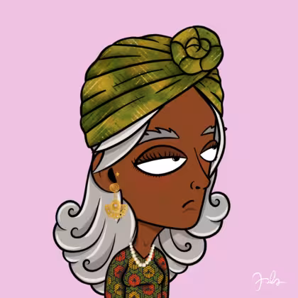 Collection Depressed Citizens Artist Juls Description ART. No team, no project, no future. Depressed Citizens is an urban & existential Art expression on Ordinals. In a parallel universe, "THEI" control us. DC unites against toxic society, encouraging critical thinking. 100% hand made collection that took Juls more than 6 months of daily work. Name Citizen#2248 Origin African descendant Gender Woman Necklace Pearl necklace Hat Green turban Mustache Beard No beard Glasses No Glasses Earrings Tragus star earring Hair Style Long wavy Clothes Geometric ethnic long-sleeve dress Tattoo No Tattoo Star Background Without stars