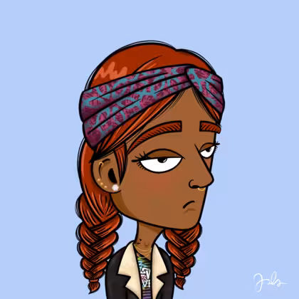 Collection Depressed Citizens Artist Juls Description ART. No team, no project, no future. Depressed Citizens is an urban & existential Art expression on Ordinals. In a parallel universe, "THEI" control us. DC unites against toxic society, encouraging critical thinking. 100% hand made collection that took Juls more than 6 months of daily work. Name Citizen#8 Origin Hispanic Gender Woman Necklace Gold layered necklace Hat Printed headband Mustache Beard No beard Glasses No Glasses Earrings Rook hoop Hair Style Double braids Clothes Love is love one shoulder crop Tattoo Rose tattoo Star Background Without stars