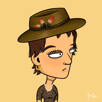 Collection Depressed Citizens Artist Juls Description ART. No team, no project, no future. Depressed Citizens is an urban & existential Art expression on Ordinals. In a parallel universe, "THEI" control us. DC unites against toxic society, encouraging critical thinking. 100% hand made collection that took Juls more than 6 months of daily work. Name Citizen#644 Origin Asian & Pacific islander Gender Woman Necklace Choker Hat Fedora hat Mustache Beard No beard Glasses No Glasses Earrings Ball earrings trio Hair Style Shaggy shorts with bangs Clothes Old school brown printed shirt Tattoo No Tattoo Star Background Without stars