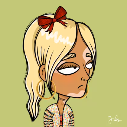Collection Depressed Citizens Artist Juls Description ART. No team, no project, no future. Depressed Citizens is an urban & existential Art expression on Ordinals. In a parallel universe, "THEI" control us. DC unites against toxic society, encouraging critical thinking. 100% hand made collection that took Juls more than 6 months of daily work. Name Citizen#1631 Origin Unique Gender Woman Necklace Gold layered necklace Hat Red bow Mustache Beard No beard Glasses No Glasses Earrings Rook hoop Hair Style High ponytail Clothes Red bandana crop top Tattoo No Tattoo Star Background Without stars