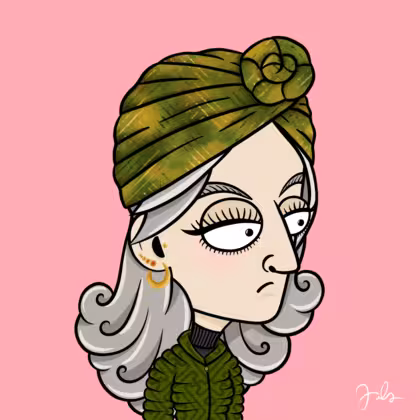 Collection Depressed Citizens Artist Juls Description ART. No team, no project, no future. Depressed Citizens is an urban & existential Art expression on Ordinals. In a parallel universe, "THEI" control us. DC unites against toxic society, encouraging critical thinking. 100% hand made collection that took Juls more than 6 months of daily work. Name Citizen#2451 Origin Caucasian non hispanic Gender Woman Necklace No Necklace Hat Green turban Mustache Beard No beard Glasses No Glasses Earrings Tragus star earring Hair Style Long wavy Clothes Black turtleneck women's sweater Tattoo No Tattoo Star Background Without stars